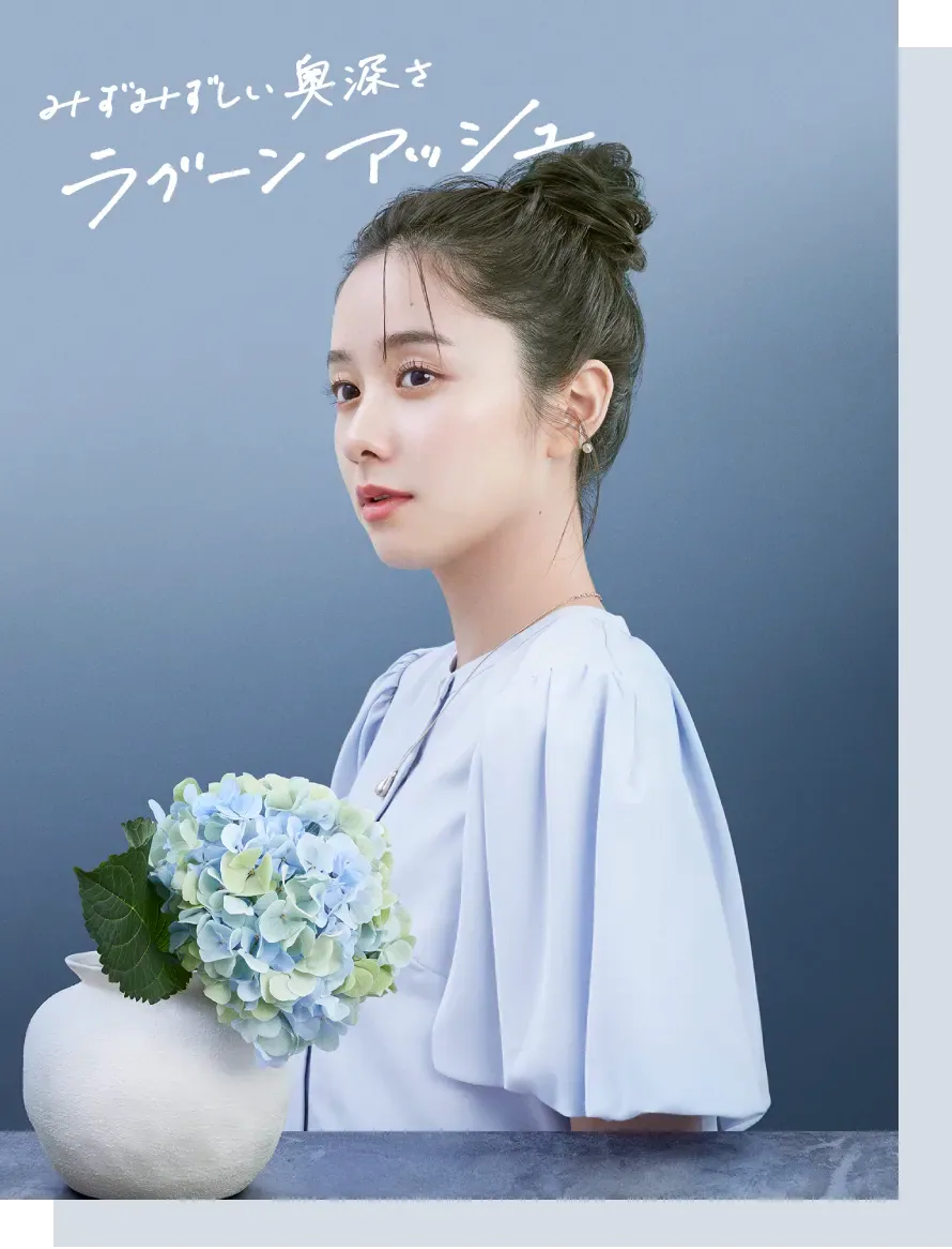 透明感とやわらかさを実現するために、グレーやブルーの色味をブレンドした「サロン設計」が、ブルベ夏にぴったりです。
