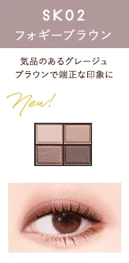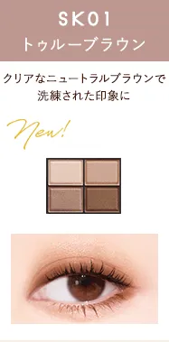 特にベーシックで使いやすい「SK01 トゥルーブラウン」や、肌なじみのよい「SK04 ベージュブラウン」は、テクニックがなくても自然な陰影をつくりやすいカラーです。(※3)